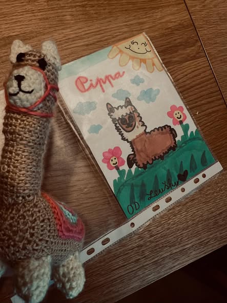 V posledních týdnech u nás probíhalo několik soutěží a nedávno si jedna výherkyně přišla vyzvednout svou vlněnou alpaku. Radost byla velká a nejen na straně výherce! Dcera výherkyně, která má bohužel už měsíc sádru, nám mezitím nakreslila nádherný obrázek naší Pipinky! A její maminka nám ještě navíc vyrobila krásnou pletenou alpaku!