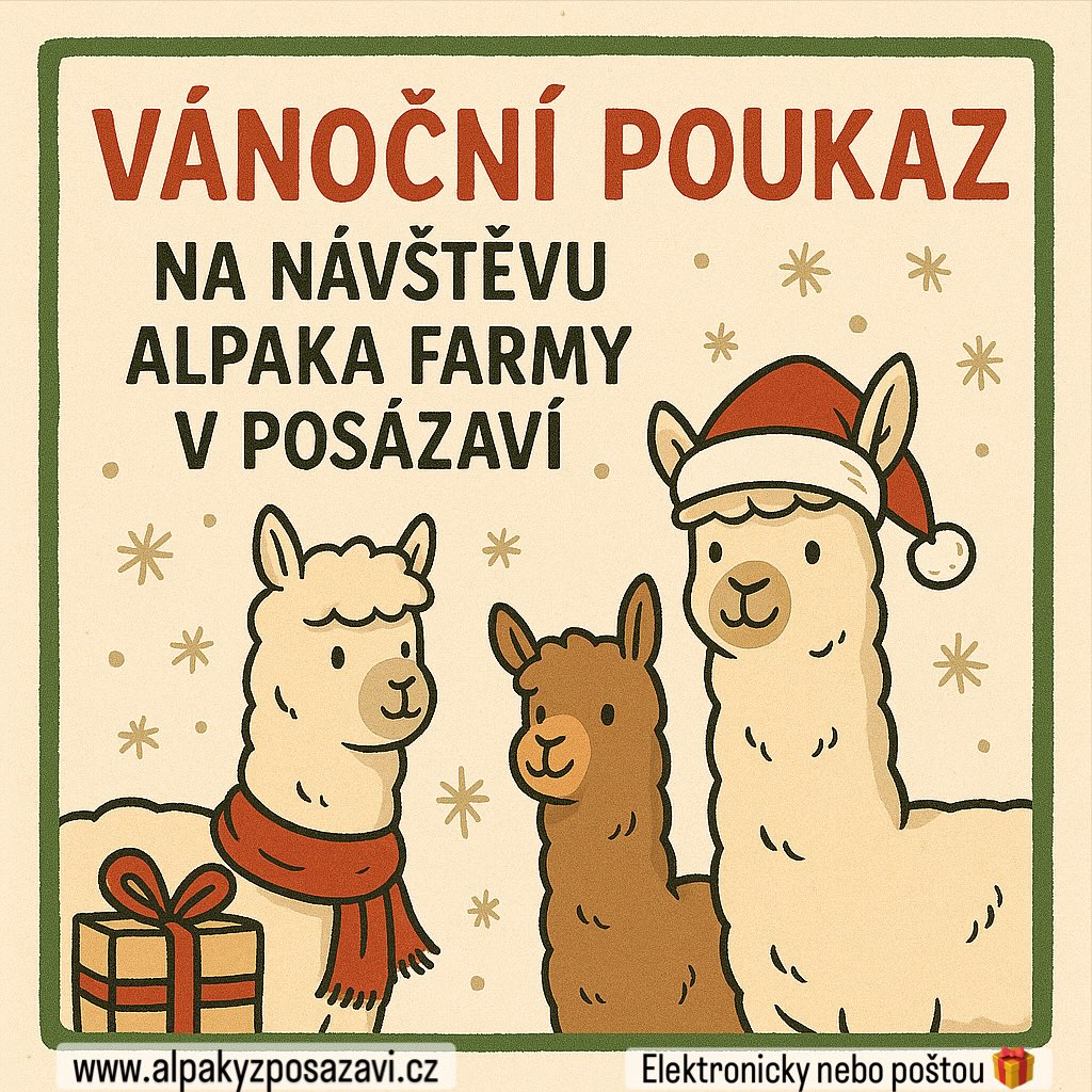 Nevíte nebo přemýšlíte jaké dárky pro své blízké k Vánocům 🎁? Co takhle návštěva u nás na farmě v Posázaví? Procházka s alpakami, krmení, hlazení a mazlení alpak, focení i malé občerstvení. To vše u nás najdete pohromadě a právě takovým zážitkem můžete obdarovat své nejbližší nebo kamarády 🎁